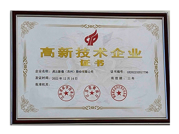 11月,成立全資子公司“虎丘影像新材科技(蘇州)有限公司”,從事醫學影像輸出打印熱敏耗材的研發生產