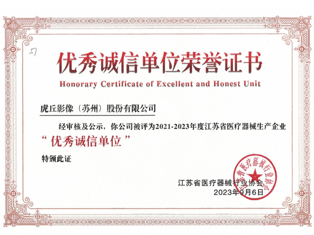 近日,虎丘影像再次獲得江蘇省醫療器械行業協會評選的“優秀誠信…